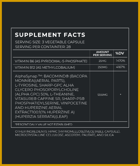 - AlphaSynap™: The worlds best proprietary technology that blends the exact right ingredients to maximize your brains potential.
